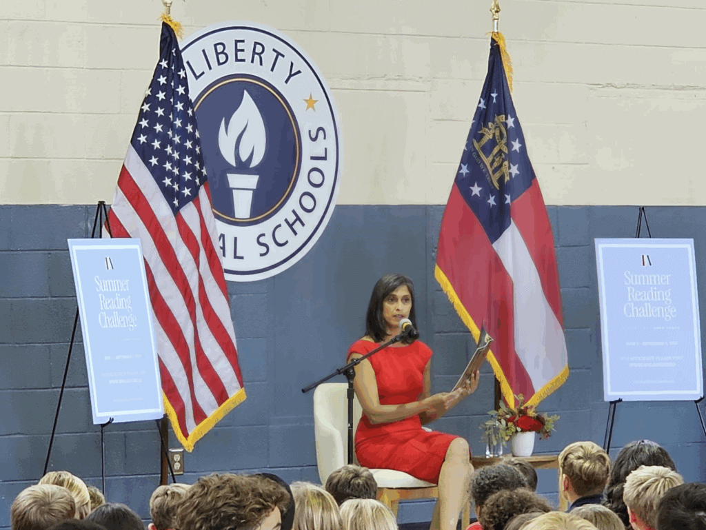Second Lady Usha Vance paid a special visit to Cherokee Classical Academy (CCA) in Canton on Thursday, Aug. 21. During her visit, Ms. Vance read to students and encouraged them to participate in her Summer Reading Challenge, which asks students to complete 12 books by Sept. 5 and gives them an opportunity to meet her at the White House.